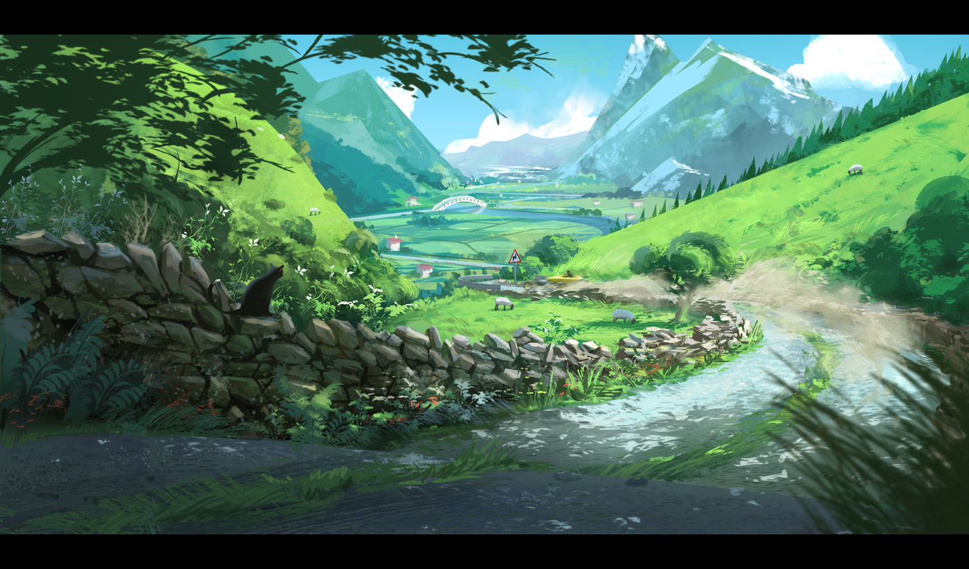 I did this one for the weekly Art Jam over at Polycount. The subject was Studio Ghibli so I tried to get that same kind of palette going on in this landscape shot, although the shape design is a bit more graphic than you tend to see in their work: